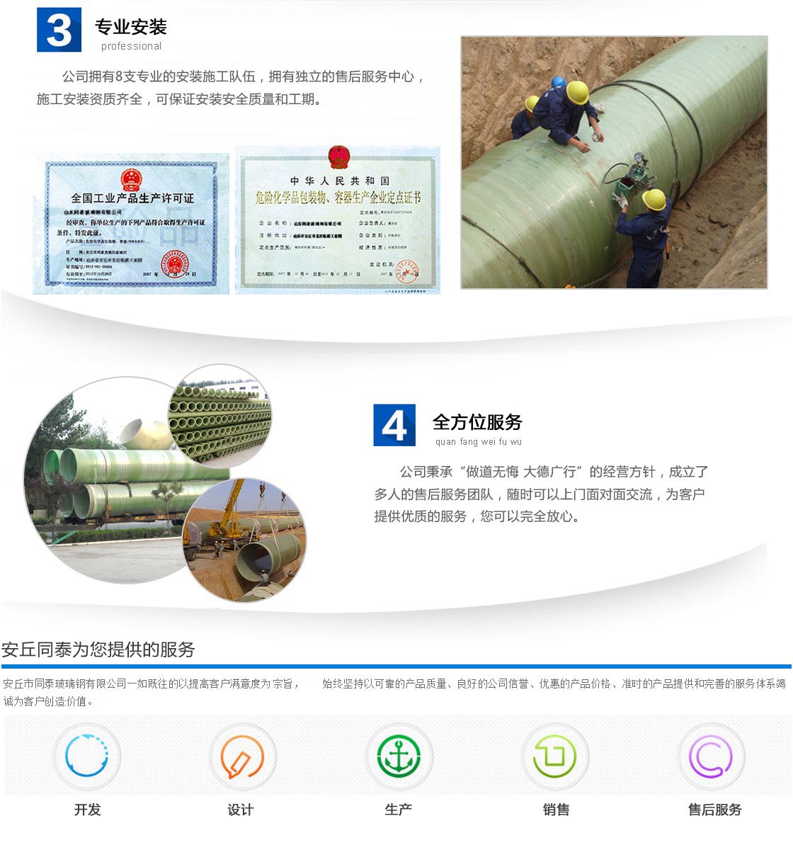山東同泰玻璃鋼有限公司,位于世界風箏都濰坊市南30公里的安丘市經濟開發區同泰工業園,占地面積200畝,廠房面積12000平方米,擁有固定資產5860萬元,各種專業制造設備齊全先進。在公司企業文化的感召下,旗下凝聚了一大批有志于玻璃鋼產業的國內工程技術人才和的產業員工。是生產制造各種玻璃鋼系列產品和加工制造各種機械配件、定型不定型產品的大型專業制造商,年產值近3億元,成為當地政府民營骨干企業之一。 近年來,在公司戰略方針的指導下,同泰得到長足的發展,先后參入國內重大工程建設的配套生產,承攬了浙江二建援疆引水農田灌溉工程和當地市政工程-汶河南岸的倒虹吸工程等重大工程,深受政府稱贊。 本公司產品有:各種規格復合玻璃鋼管道、管件、夾砂管道、電纜管道、通風管道、壓力管道、玻璃鋼罐、儲存罐、運輸罐、化工設備罐、圓形...